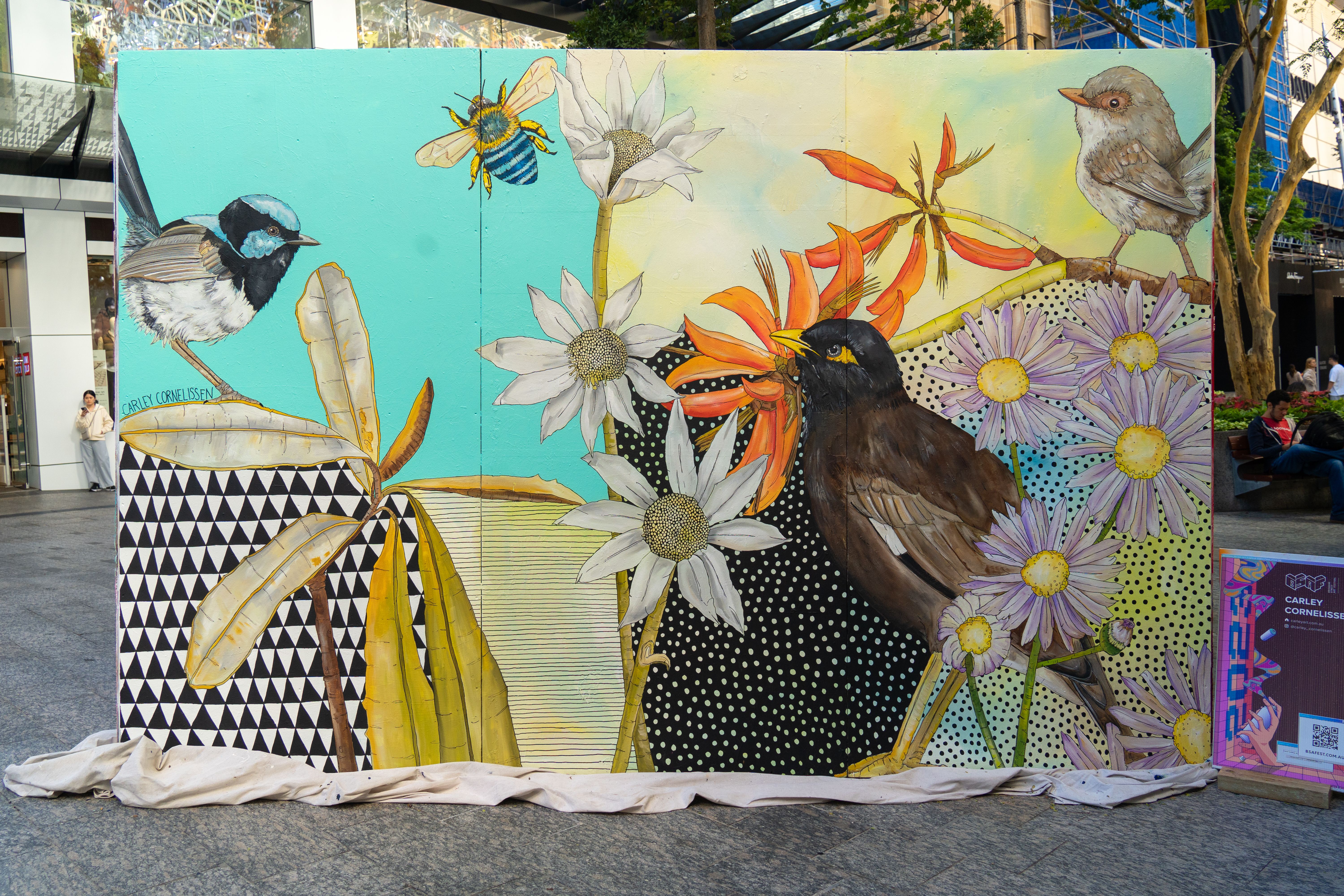 With a background in graphic design & illustration, the majority of her recent work has been on a much larger scale. Her murals are vibrant and colourful and often a little bit whimsical. There is always a key message at the core of her artwork and the ultimate aim is to have a positive impact on the surrounding community. Cat has worked with numerous architects, schools and commercial businesses to bring their buildings to life. From Taronga zoo to Bondi beach, most of her murals can be spotted around inner Sydney suburbs. She paints in a variety of styles and likes to draw from nature and the local environment for her inspiration.