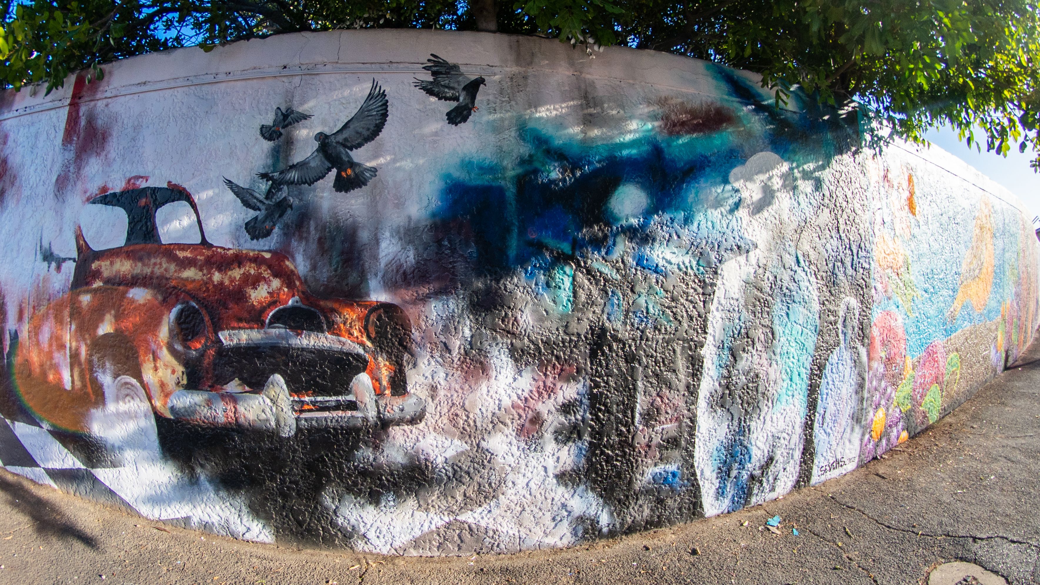 Arina Apostolova was born and raised in Odessa, Ukraine in 1989. Arina has started her artistic journey at Odessa State Academy of Building and Architecture in 2006 where she got knowledge on fine art disciplines as academic drawing, painting, sculpture. Arina lived in China in 2019 and it has had a significant impact on her creative life and development. Her paintings have been exhibited all over China and they are housed in public and private collections. Within her own body of work, she classifies the type of painting as “Composite Realism”, because they involve elements of intense realism combined with abstract patterns and surrealistic dream-like scenes and symbolic images. In June 2022 Arina moved to Australia and she created already 7 mural projects across the country, including large scale skate park mural with local artist Mike Shankster in Queanbeyan, NSW.