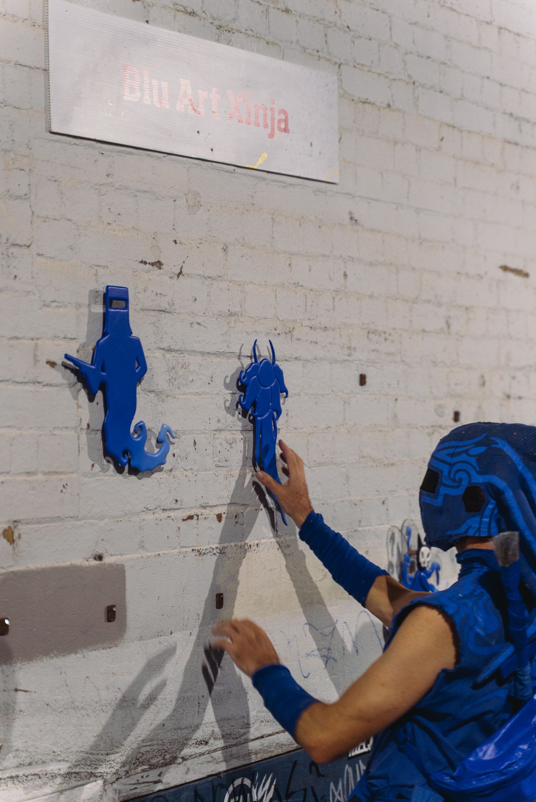 Blu Art Xinja (Ninja) is a local street artist, well known for installing the iconic blue sculptural