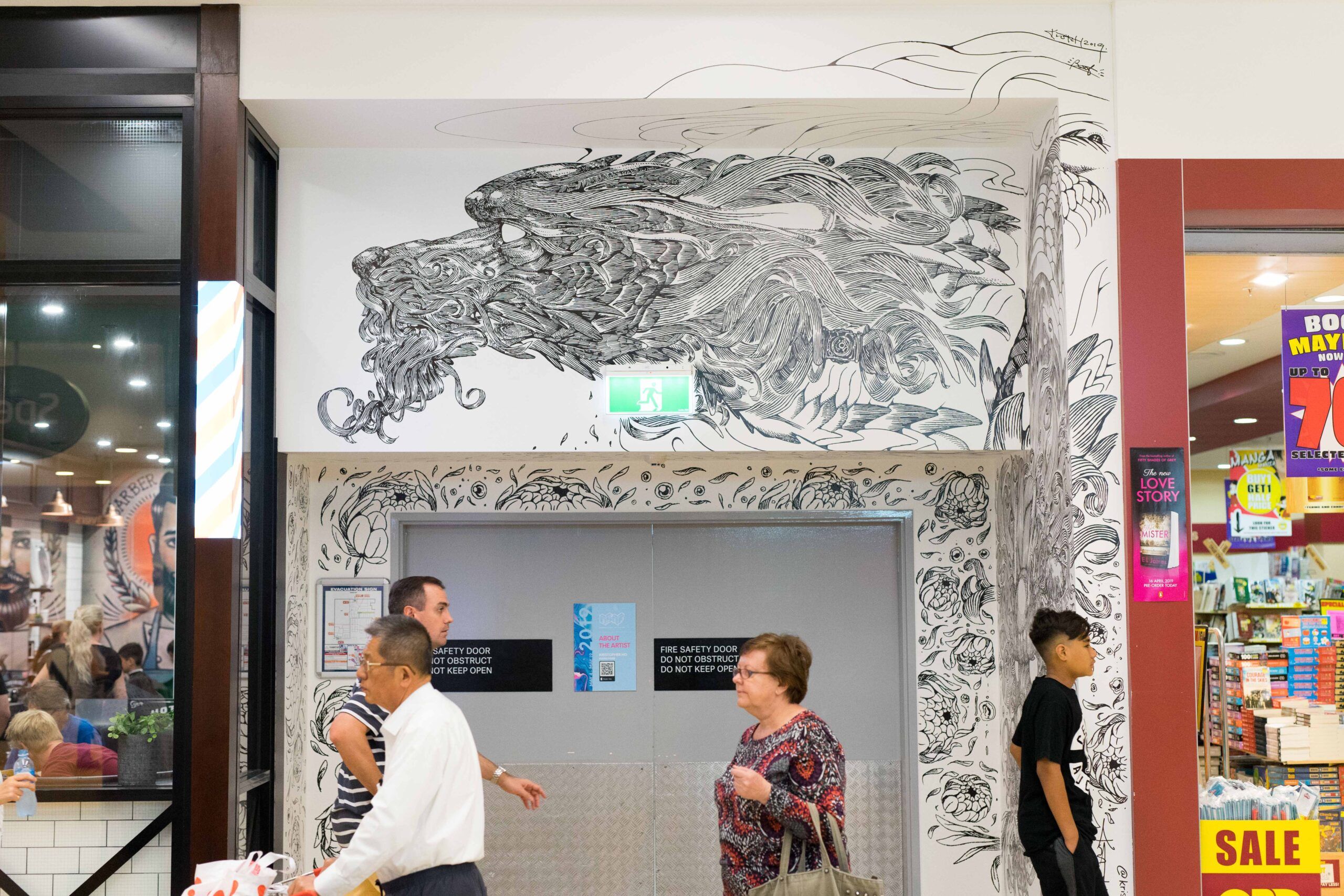 Kristopher Ho, is a Hong Kong based artist and illustrator. Born in Hong Kong and raised in Blackpool, UK, he is well known for his monochromatic and highly intricate murals and illustrations. His work has been described as both impactful with his strokes yet also filled with intricate details. Markers have mainly been his tool of choice for both his mural and illustrations. He is a fan of Doraemon’s work, and all his murals has a tiny one hidden within.