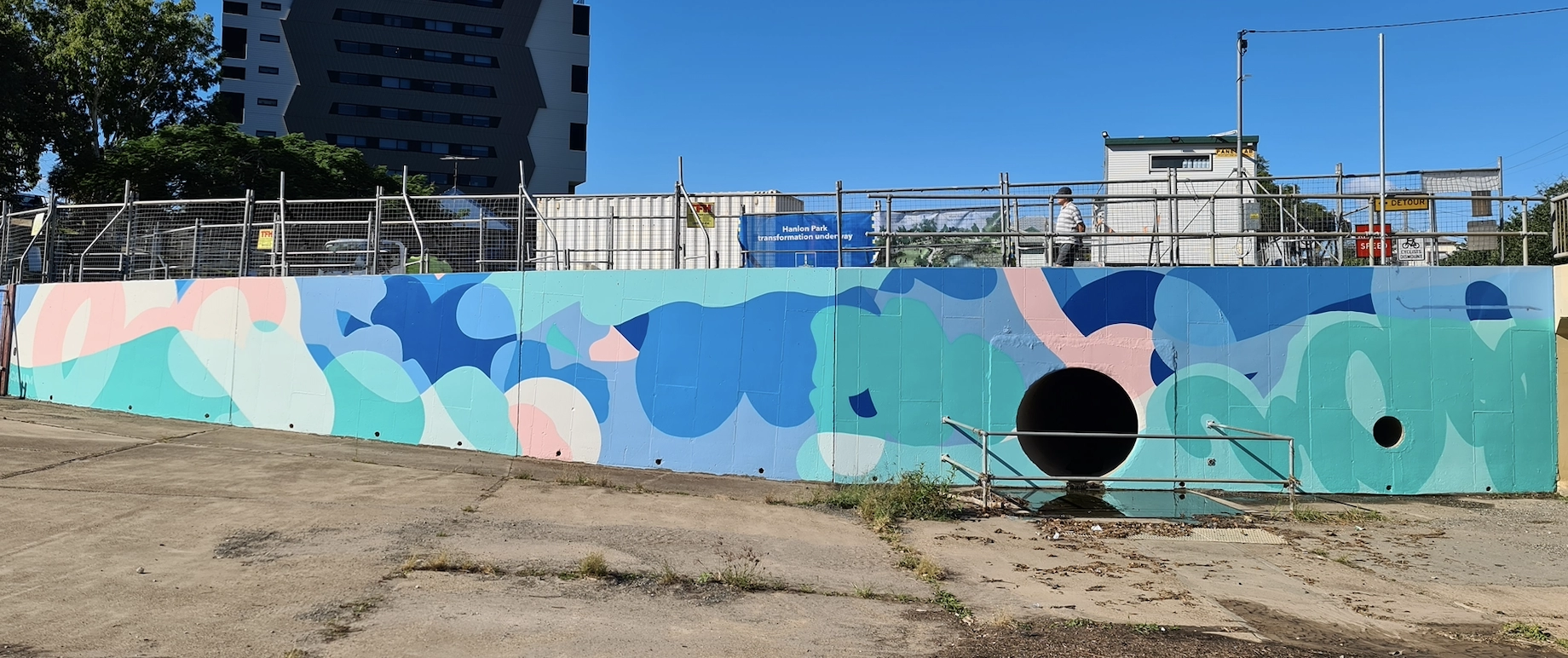 With a distinctive mix of abstract and realistic techniques, Claire’s painted mural works explore a site specific narrative often concerned with the connectedness of people and place.