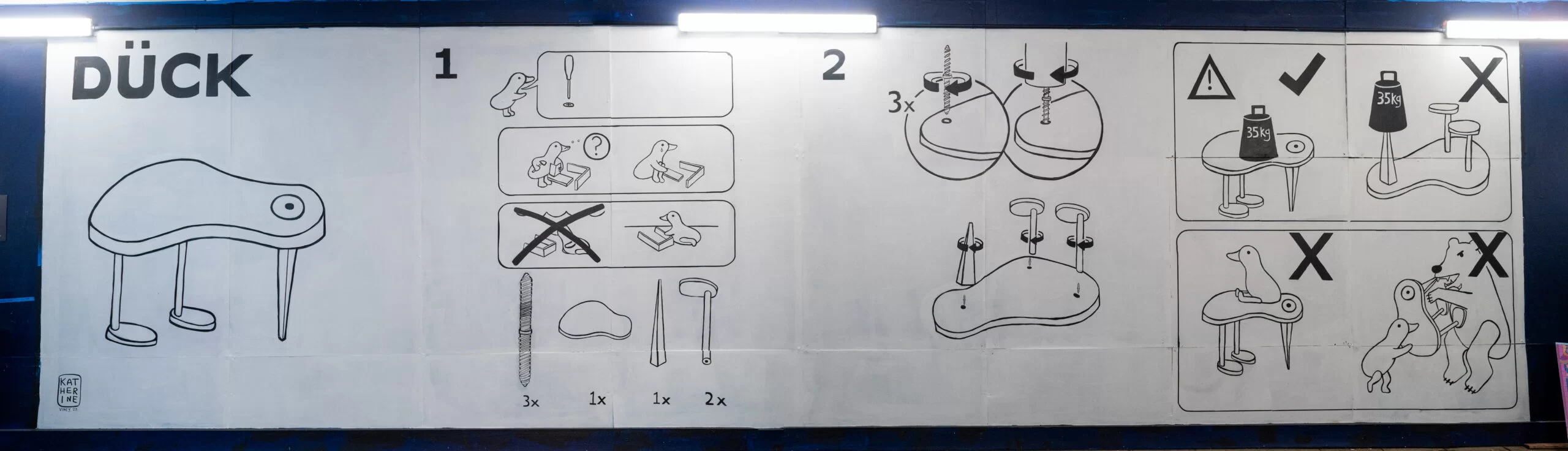 Katherine Viney (she/her) is an artist, designer and muralist from Brisbane, Australia. She recently graduated from being a child to being an artist. Her work consists of mostly ducks but also other things. She is a firm believer that art is meant to be fun and accessible, which is why her work is so fun and accessible.