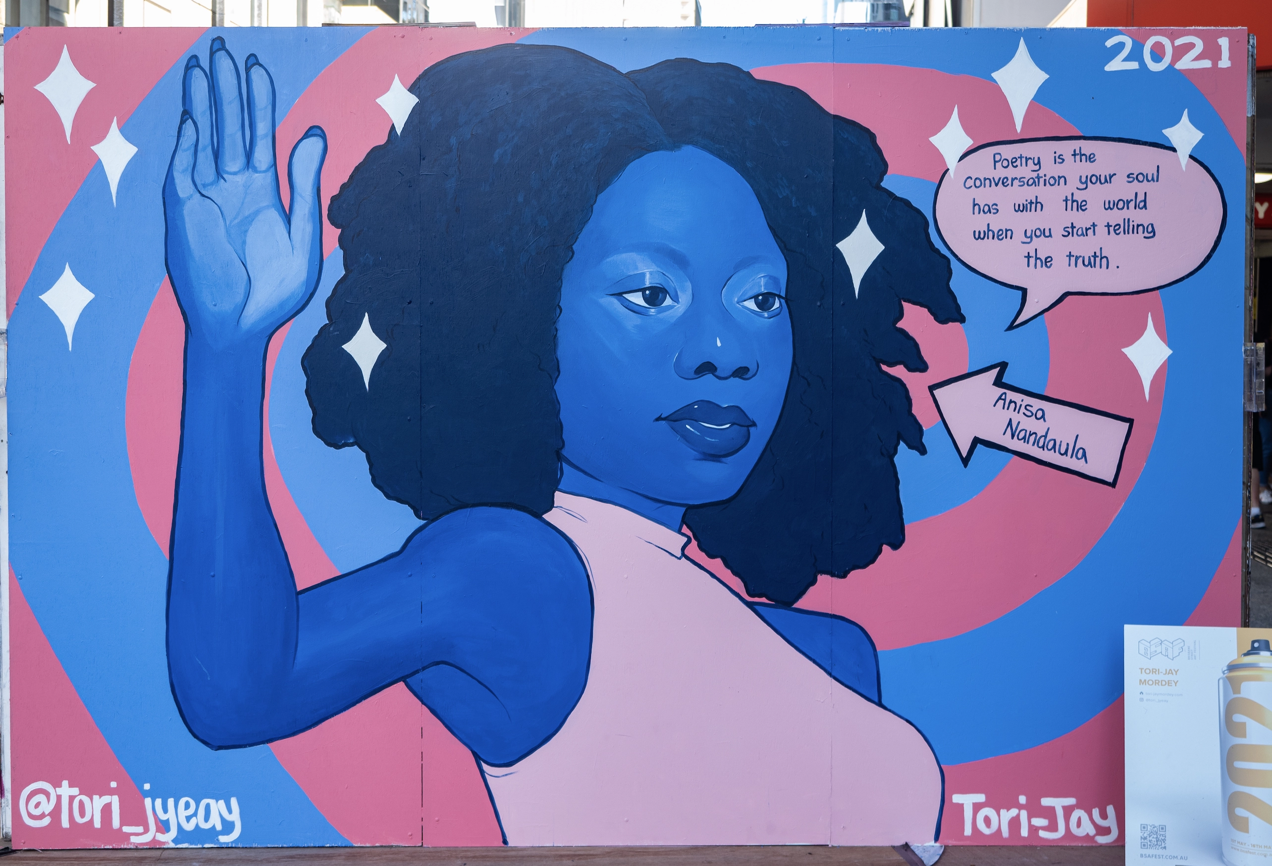Tori-Jay Mordey is an established Indigenous Australian illustrator and artist currently based in Brisbane. Over the years Tori-Jay has honed her skills in digital illustrations, drawings, painting, printmaking and film while also expanding her skills as a mural artist. A lot of her work revolves around human connection and exploring her racial identity. In her illustrative work Tori-Jay often combines stylistic cartoons with realism to help capture the complexities of our emotions; distorting and exaggerating the characters in a way that helps express and expose their vulnerabilities.