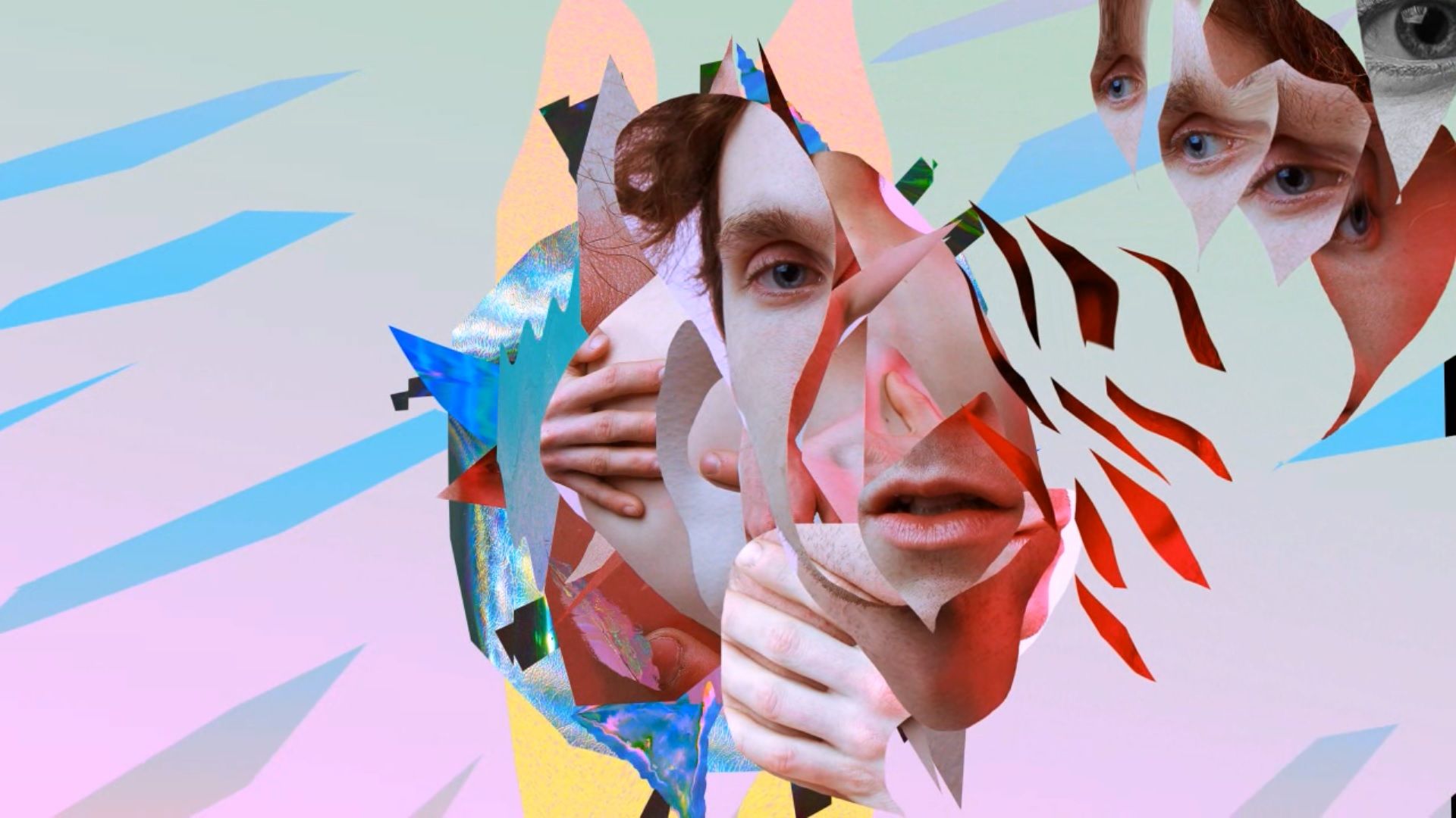 This is a portrait of a young man who has a desire for intimacy in a digital age. Societies’ widespread adoption of the internet has made computers the main platform for social interaction. He seeks to throw aside any digital interaction and reconnect with real life experiences but can’t help but find himself feeling left out and disconnected in an age where the internet and digital technology is rapidly transforming life, work and politics. He is trapped, relying on technology to connect with others but only finds the interactions feeling vacuous and empty. The work takes a critical look at the stance of the contemporary image and the internet. Showing fragmented, paper thin, cut out slices of physical materials and body digitally manipulated and assembled together, creating an exchange between the digital world and “real life”, the work aims to reflect the contemporary human experience and our relationships with digital technology. The outcome presenting a hyper coloured, perplexing mashup of digital and “real” and a closer look into our lives today in a techno-reliant world.